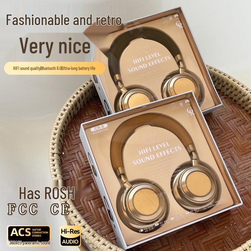 Retro Style Bluetooth 6.0 Over-Ear Wireless Headset with Microphone for Sports Fashion