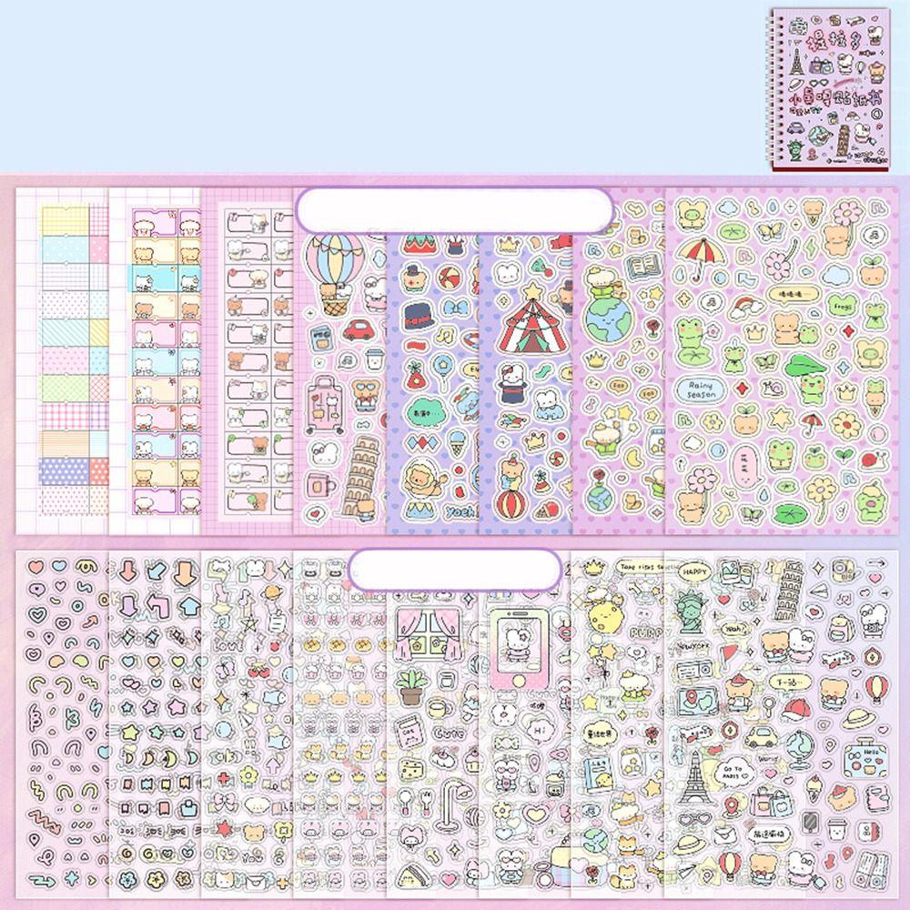 16Sheets Kawaii Kpop Decorative Sticker Book 1000+ DIY Material Cartoon Scrapbooking Stickers PET Material Sticker Decoration