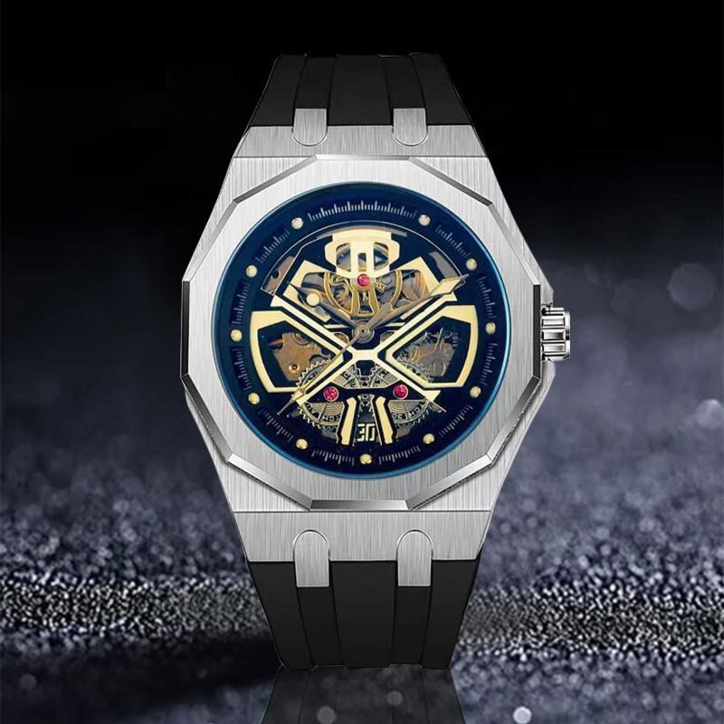 PINTIME Sports Watch for Men Water Resistant Automatic Mechanical Men's Silicone Strap Wristwatch Retro Watch