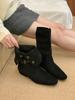 Grove Hak Suede Kleine Blote Laarzen Martin Laarzen Laarzen Riemgesp Twee Manieren te Dragen Omgeslagen Western Middelgrote Laarzen