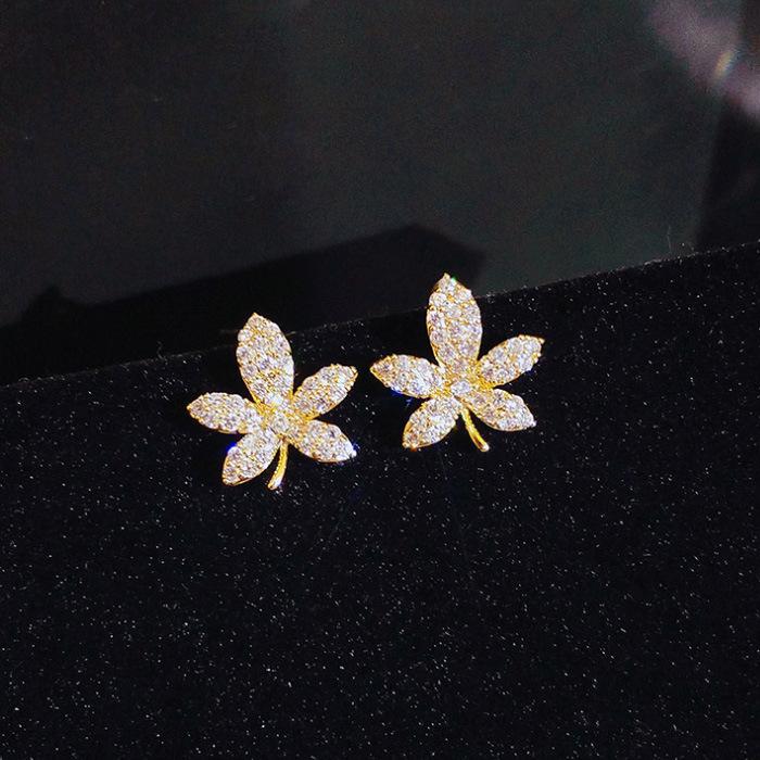 Maple Leaf Stud Earrings Trendy Simple And Versatile High-End Earrings Niche Elegant Women'S Earrings