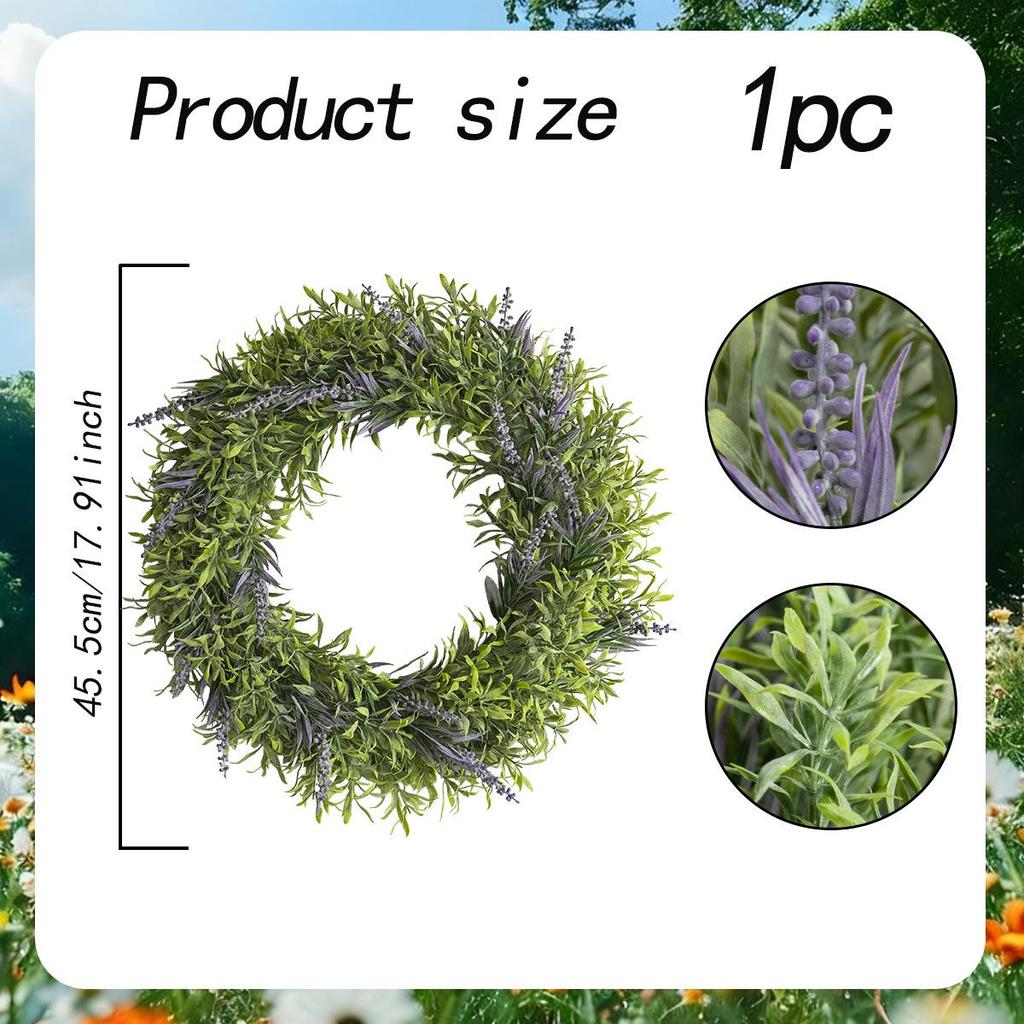 Artificial Lavender and Bamboo Leaf Wreath with Pink Flowers for Home Decoration