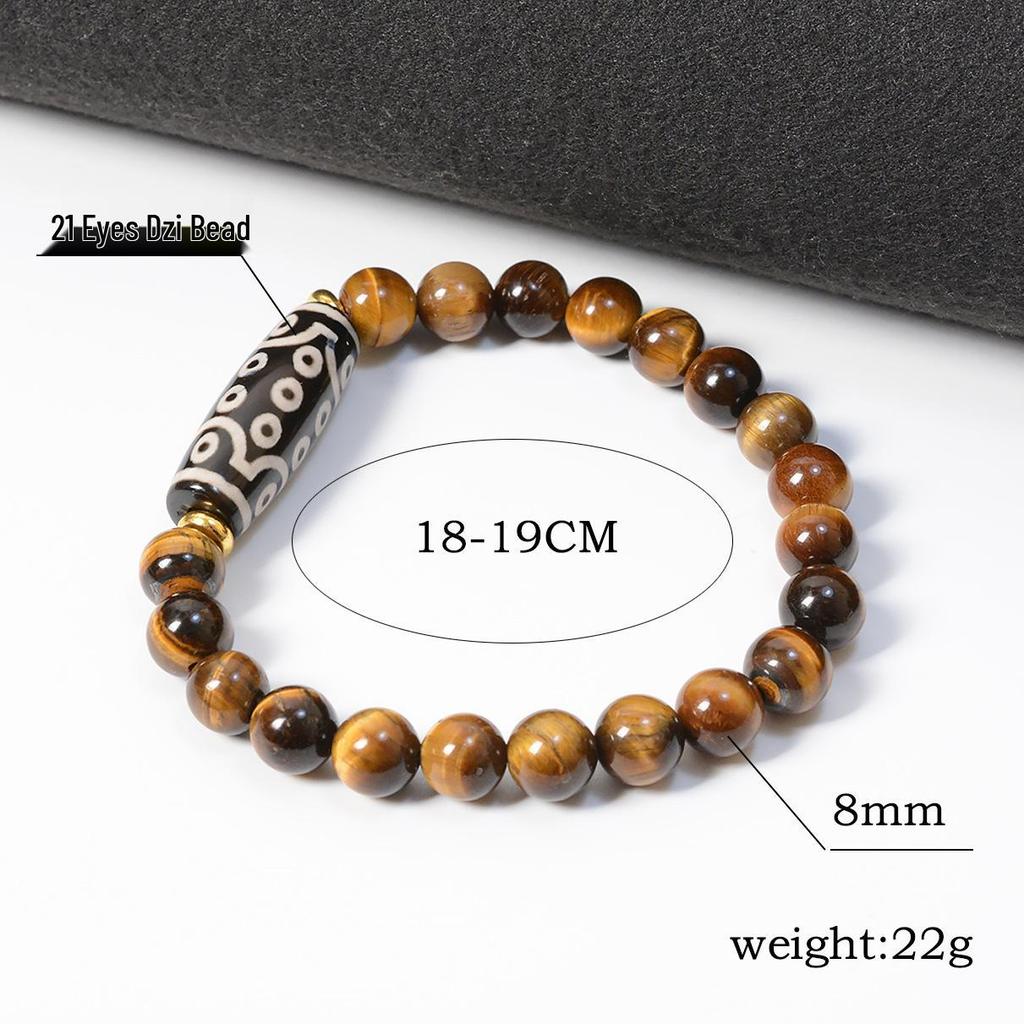 8mm Yellow Tiger Eye Agate 21-Eye Dzi Bead Bracelet for Men and Women