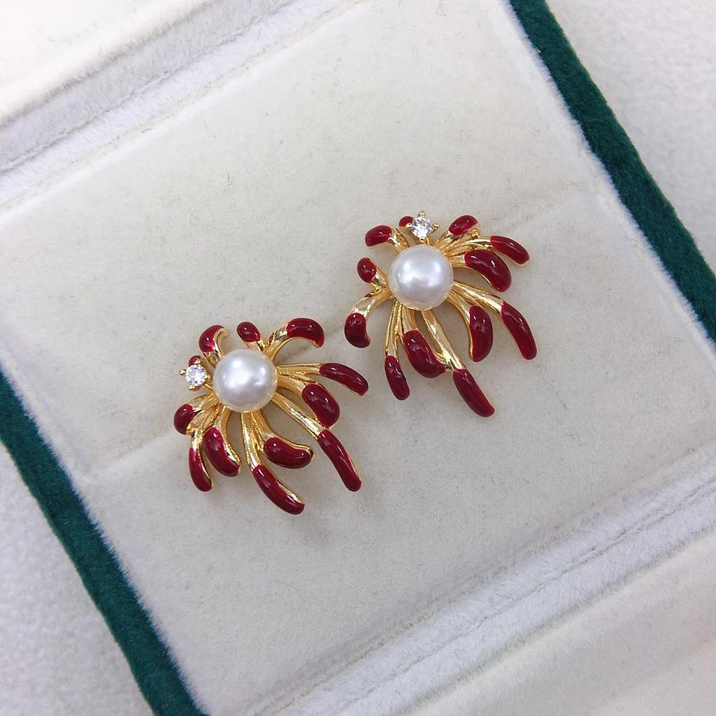 Zhuji Freshwater Pearl Stud Earrings - Autumn/Winter Fireworks Blooming Design for Women