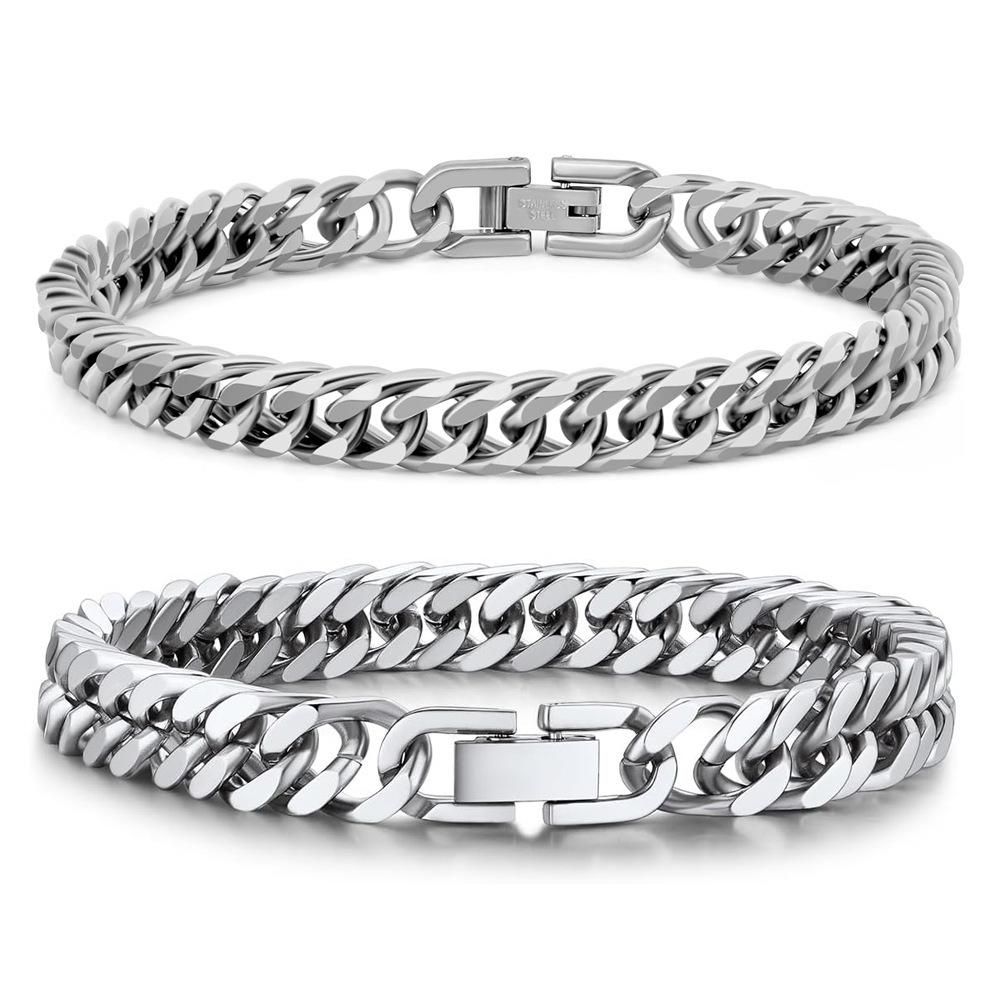 Unisex Stainless Steel Polished Cuban Bracelet - Double Woven, Cool Style, Jewelry Buckle
