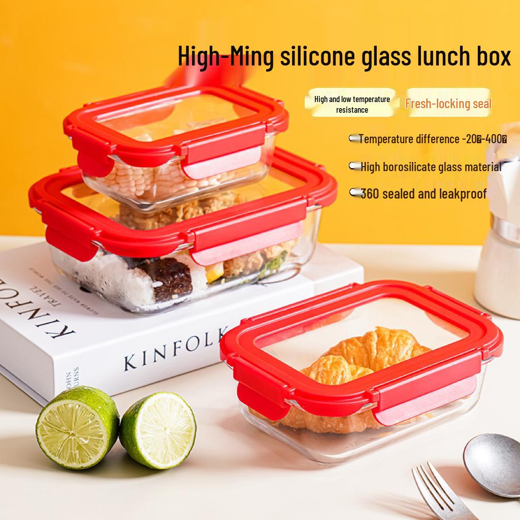 High Borosilicate Glass Lunch Box - Office Worker Bento Box with Fresh-Keeping Seal