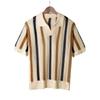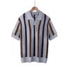 Europese Amerikaanse Mannen Zomer T-shirt met Korte Mouwen Eenvoudig Ontwerper Geometrisch Kleurblok Gestreept Ronde Hals Gebreide Top