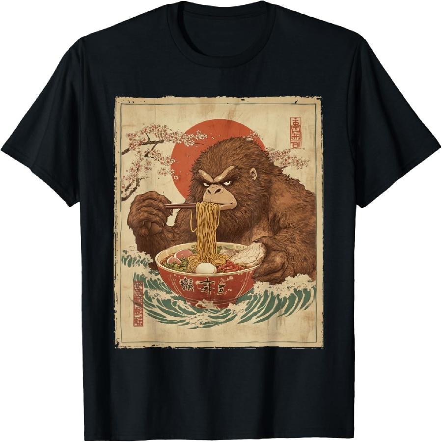 Bigfoot Eating Ramen Japanese Cryptid Sasquatch Ukiyo-e T-Shirt
