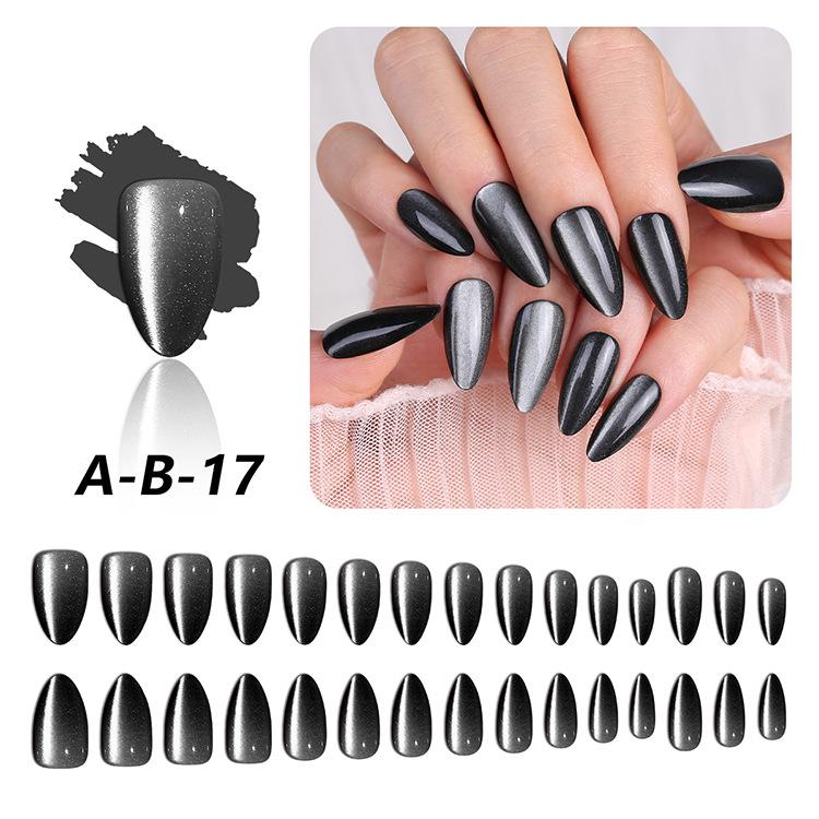 30 Pcs Pure Black Medium Almond Cat Eye Wearable Nail Strips - Special Hot Style Manicure
