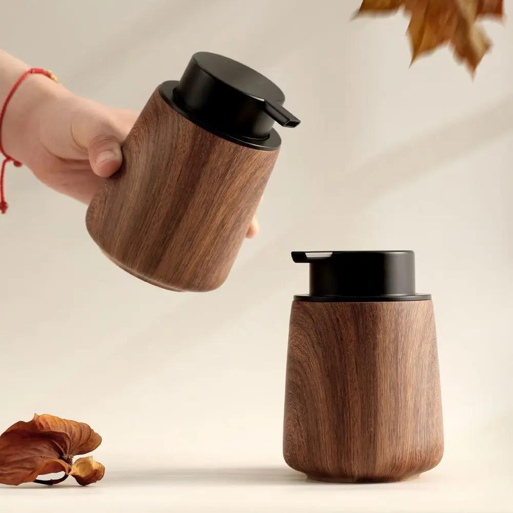 Walnoot Houtnerf Schuim Zeepdispenser Druktype Voor Douchegel Shampoo Handdesinfectiemiddel Luxe Badkamer Container