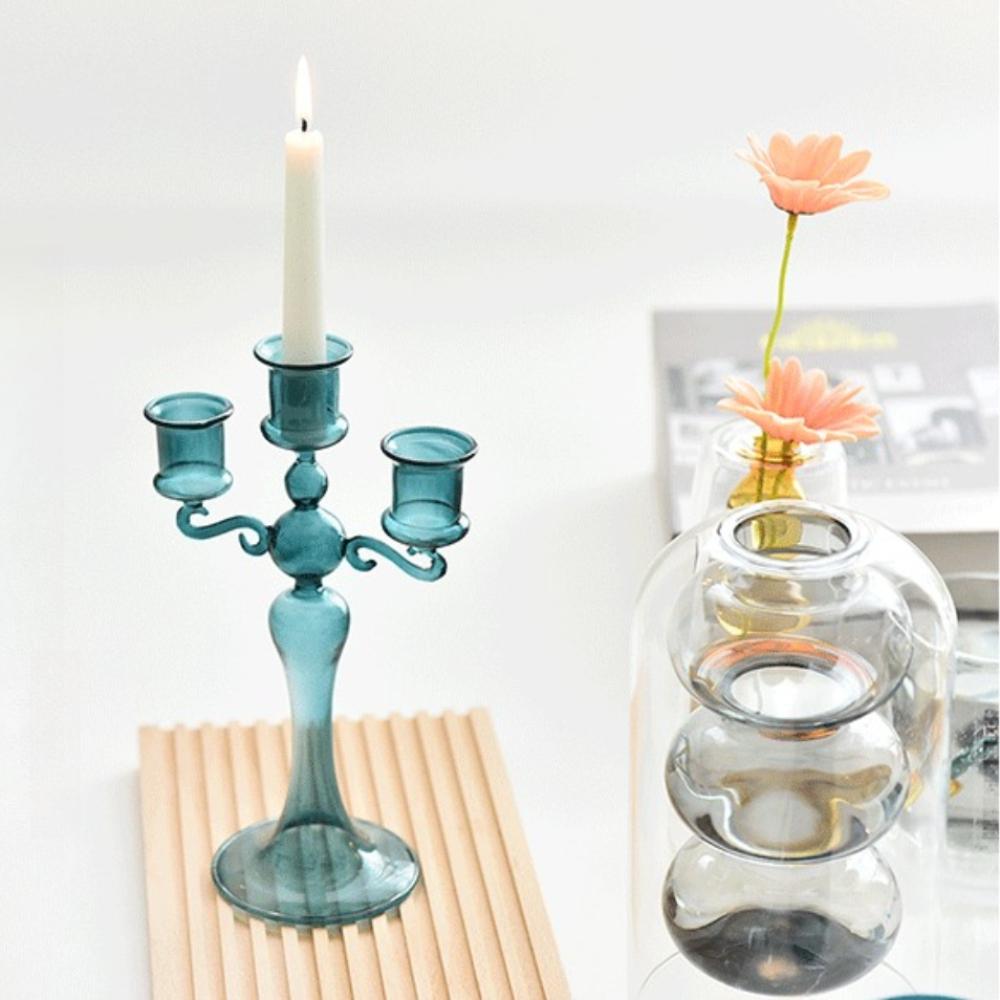 Creative 3 Heads Retro Glass Candlestick Romantic Candlelight Dinner Colorful Candle Stand Home Decor Wedding Party Decoration