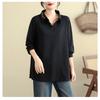 Women's Oversized Polo Shirt Long Sleeve Loose Fit Solid Black Casual Blouse Bottoming Top