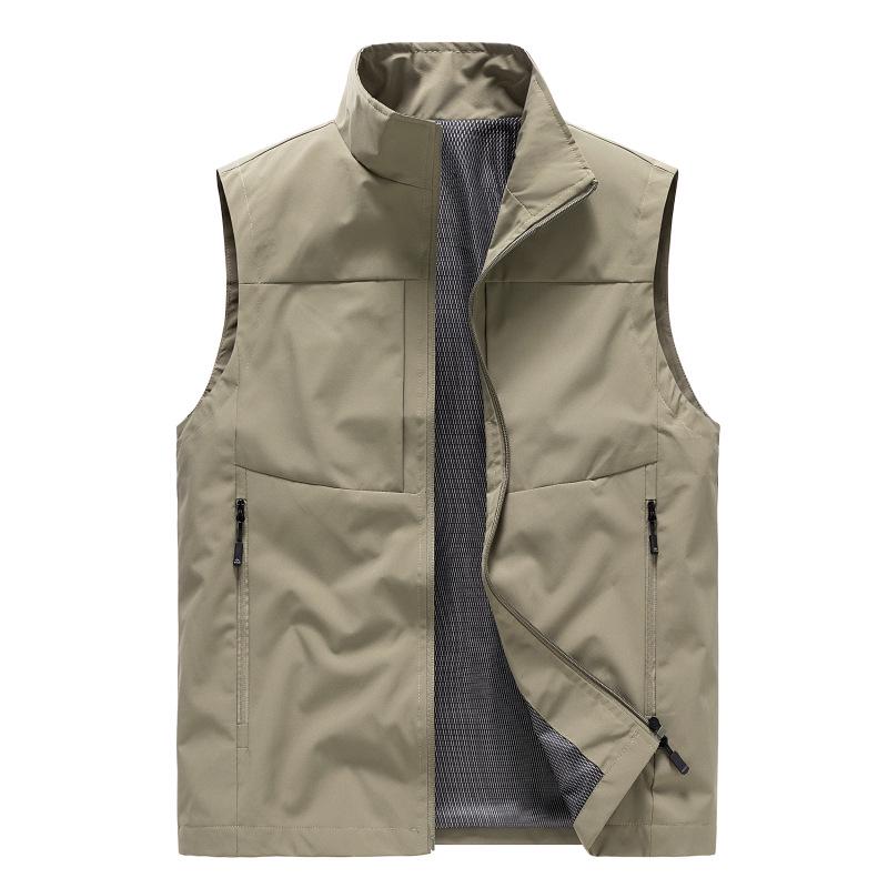 Discover the ultimate companion for your outdoor adventures with this versatile vest, designed specifically for fishing and mountaineering enthusiasts. Tailored for a sportive style, it offers a loose fit to provide maximum comfort and mobility. The stand neckline and convenient zipper closure ensure a snug fit and easy wear. Made from a thin, solid-patterned polyester material, this sleeveless vest is both quick-drying and waterproof, ensuring you stay dry in unpredictable weather conditions. Featuring multiple pockets, it provides ample space for storing essentials, making it a practical choice for any outdoor activity. Ideal for men seeking functionality without compromising on style.