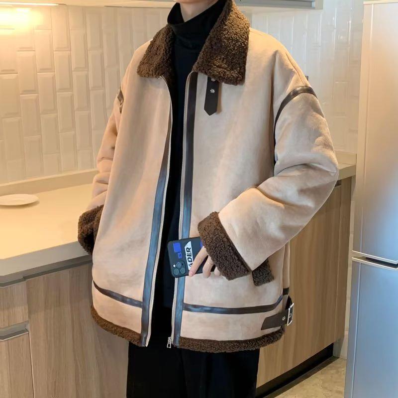 Men's Black Winter Lambswool Berber Fleece Jacket - Thick, Trendy, Fur-Lined, Lapel, Large Size Coat