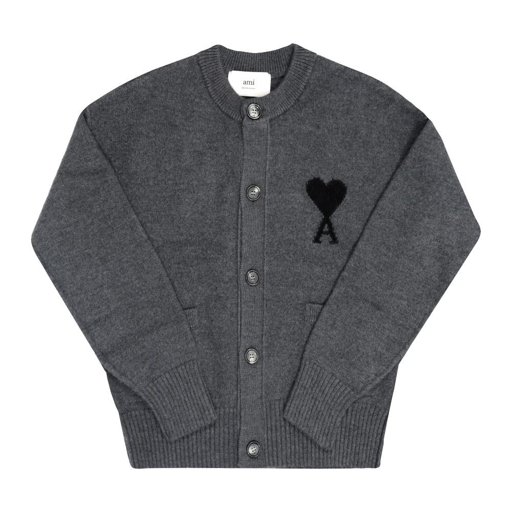 Ami Big Heart Logo Intarsia Cardigan Ami Ukc368 018 0504