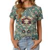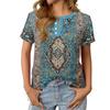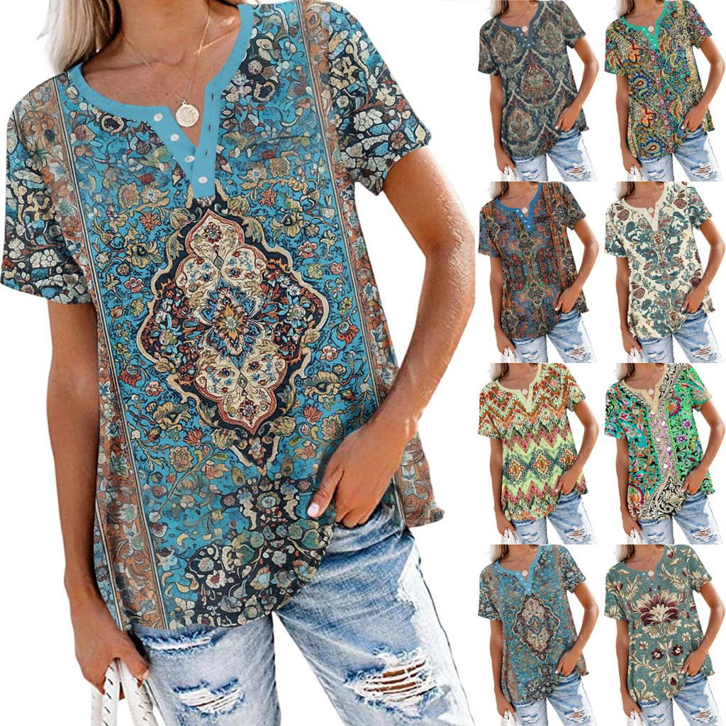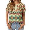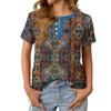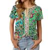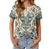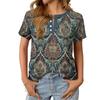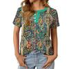 Modieuze Casual Dames Zomer Top met Retro Print, V-hals, Knopen en Korte Mouwen