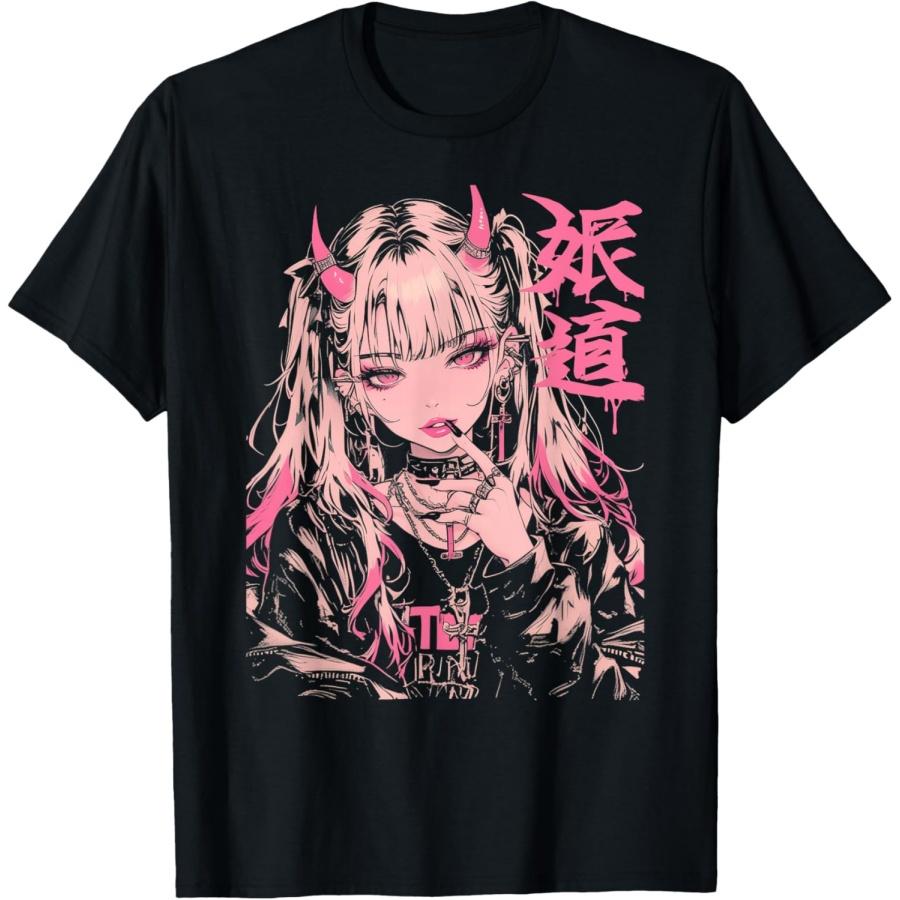 Goth Grunge Demon Anime Meisje Waifu Horror Alt Esthetisch T-shirt(5)