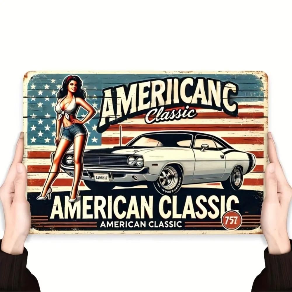 Classic Car Tin Sign Retro Vintage Metal Wall Art for Home Bar Garage Decor