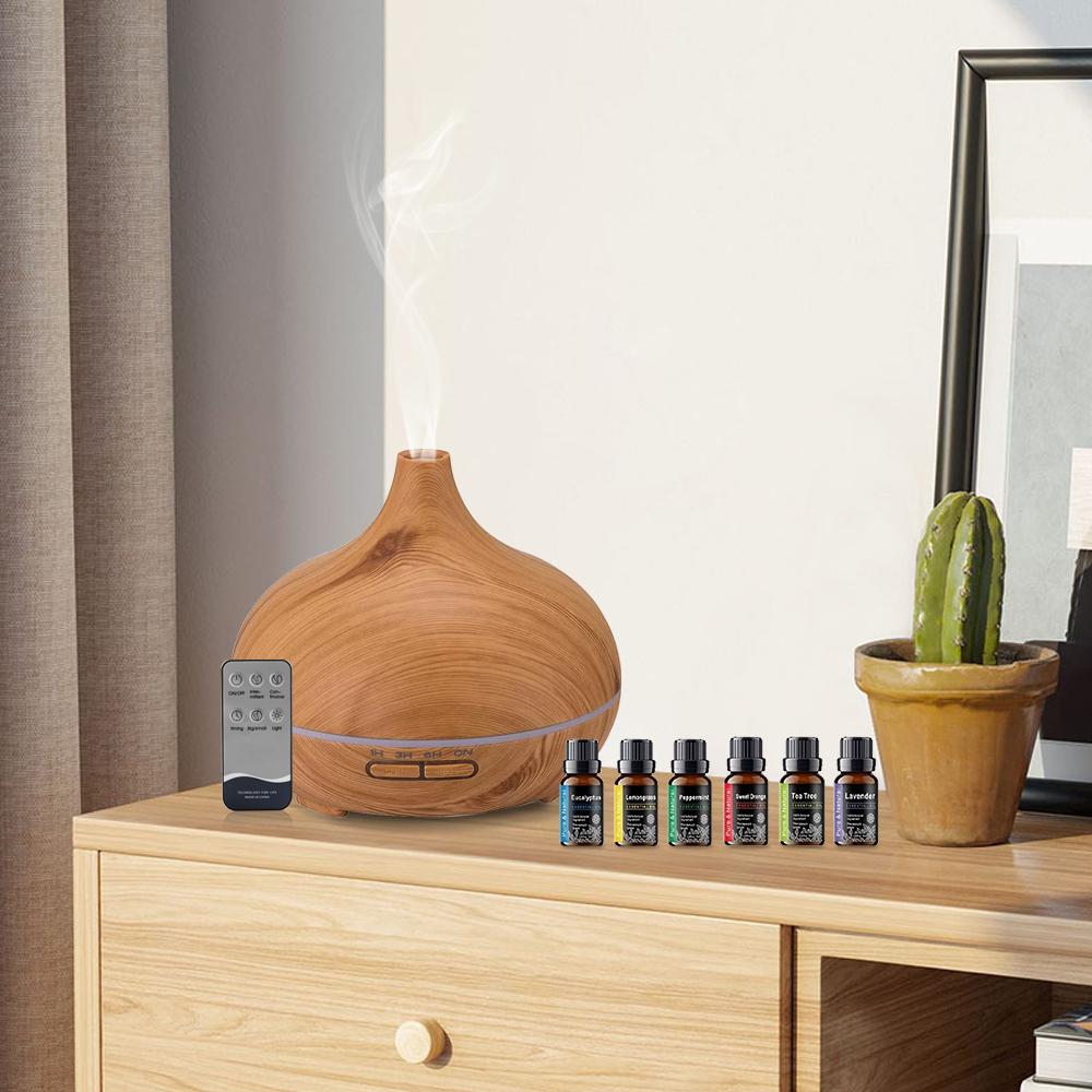 550ml Essential Oil Diffuser, Remote Control, Ultrasonic Humidifier, 7 Color LED Light with 6 Oil