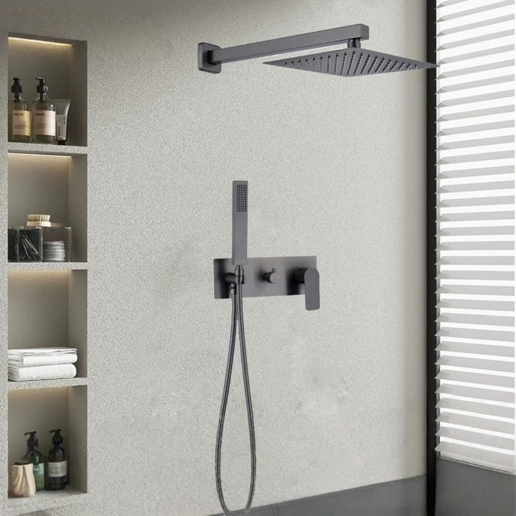 Brushed Gold Bathroom Shower Faucet Mixer Faucet Diverter With Water Outlet Holder Black Brass Rain Hand-Held Head Bathroom Set