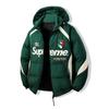 Dit stijlvolle, retro-geïnspireerde katoenen jack is perfect om warm en trendy te blijven tijdens de koudere maanden.. Met een dik en comfortabel donsjackontwerp is de jas volledig gemaakt van hoogwaardig katoen en biedt uitstekende isolatie en ademend vermogen.. Het bevat een opstaande kraag voor extra warmte en een afneembare capuchon die veelzijdige stylingopties biedt.. De Amerikaanse borduursels voegen een uniek en modieus accent toe, waardoor dit jack een opvallende keuze is voor wie zowel comfort als stijl waardeert in zijn bovenkleding.