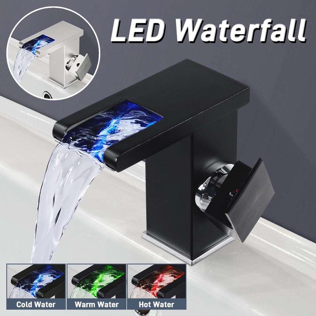 LED Sink Faucet Single Handle Toilet Hot Cold Water Mixer Tap Waterfall Bathroom Basin Faucet RGB Color Bathroom Mixer Tap