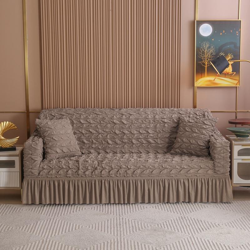 Stretch Sofa Cover Seersucker Bubble Grid Fabric High Elasticity Washable Skirt Design Durable Furniture Protector Slipcover
