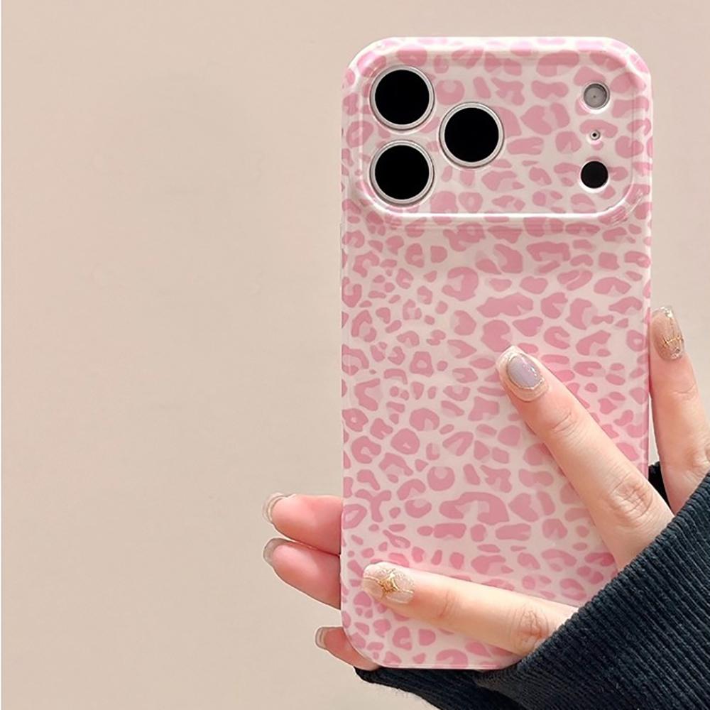 Lovely Pink Leopard Pattern Lens Protection Phone Case for IPhone 14 15 16 Pro Max Shockproof Cover for Iphone 17 Pro Air Case