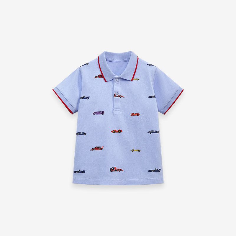 Boys' Blue Short-Sleeved Polo Shirt Baby Racing Lapel Half-Sleeved Kidsren's Pure Cotton T-Shirt Base Shirt Baby Top t