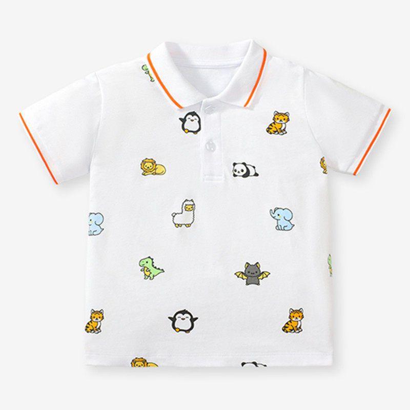 Boys and Girls Animal Short-Sleeved Polo Shirts T-Shirts Summer New Style Children's Clothing Medium and Large Children's Baby Tops Half-Sleeved 345