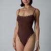 Retro Kantafwerking Patchwork Camisole Bodysuit: Minimalistisch, Ademend, Sexy Nude Stijl met Prachtige Rug