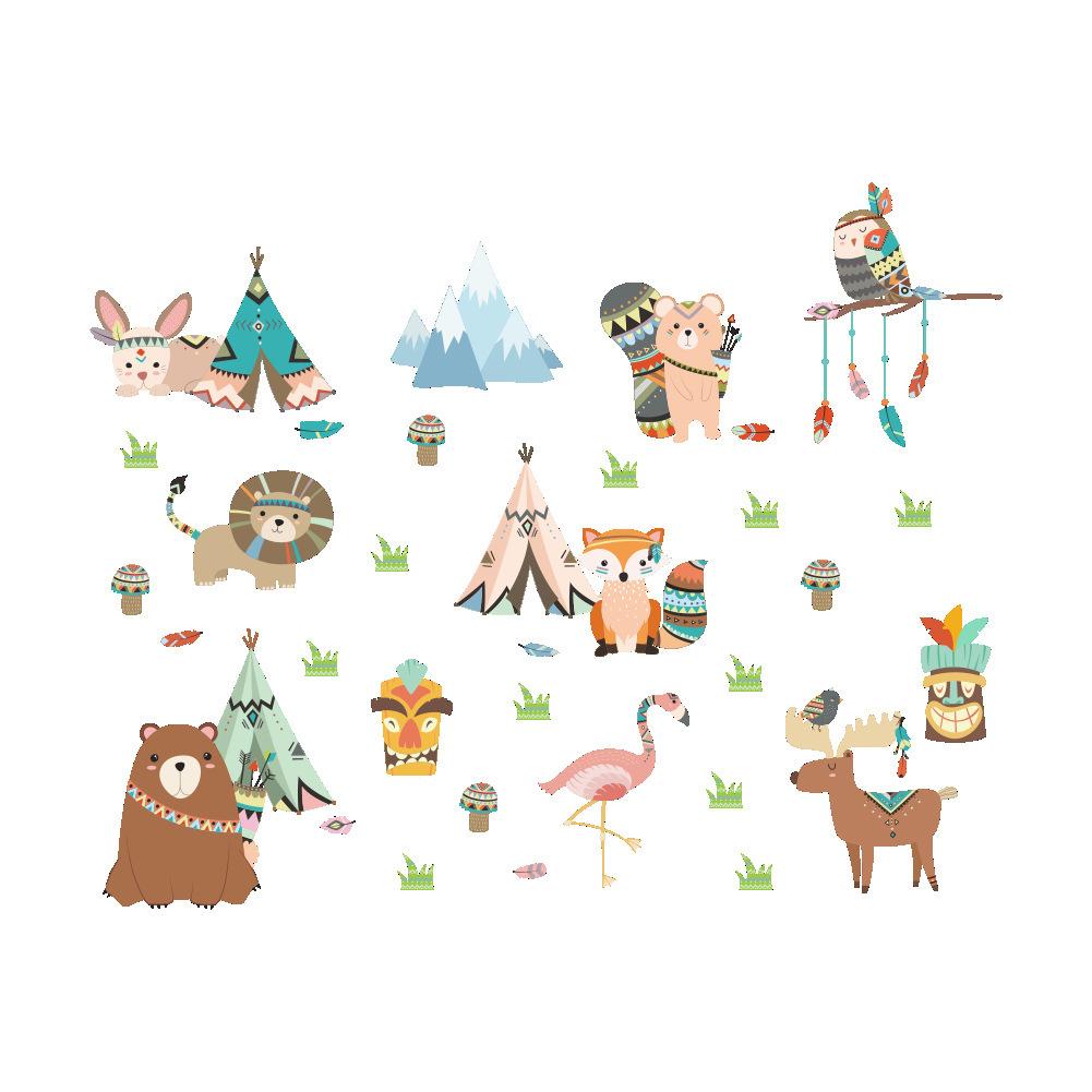 Cartoon Animal Wall Stickers Set, Removable Self-Adhesive Decals for Kids Room Nursery Kindergarten Wall Decor
