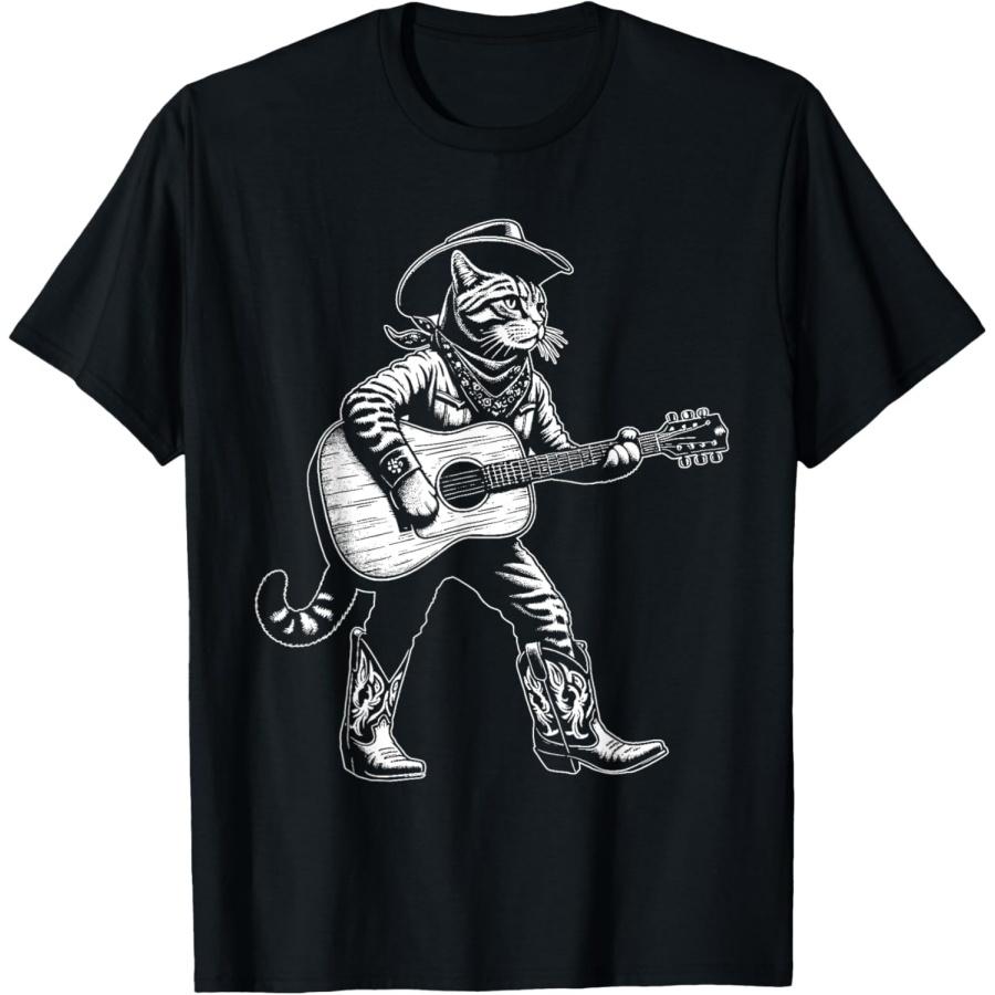 Rustic Cat Cowboy with Guitar Western Musician Country Music T-Shirt