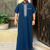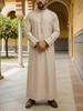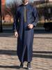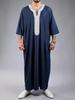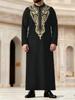 This luxurious hooded robe is designed for the modern Muslim man, combining traditional Middle Eastern thobe elements with a contemporary twist. Featuring intricate embroidered detailing, this robe offers a perfect blend of ethnic design and modern style. Crafted from high-quality polyester, it ensures comfort and durability, making it a versatile choice for various occasions. The robe's loose long sleeves provide a comfortable and relaxed fit, ideal for daily wear or special events. Available now, this stylish piece effortlessly elevates your wardrobe with its unique flair and cultural essence.