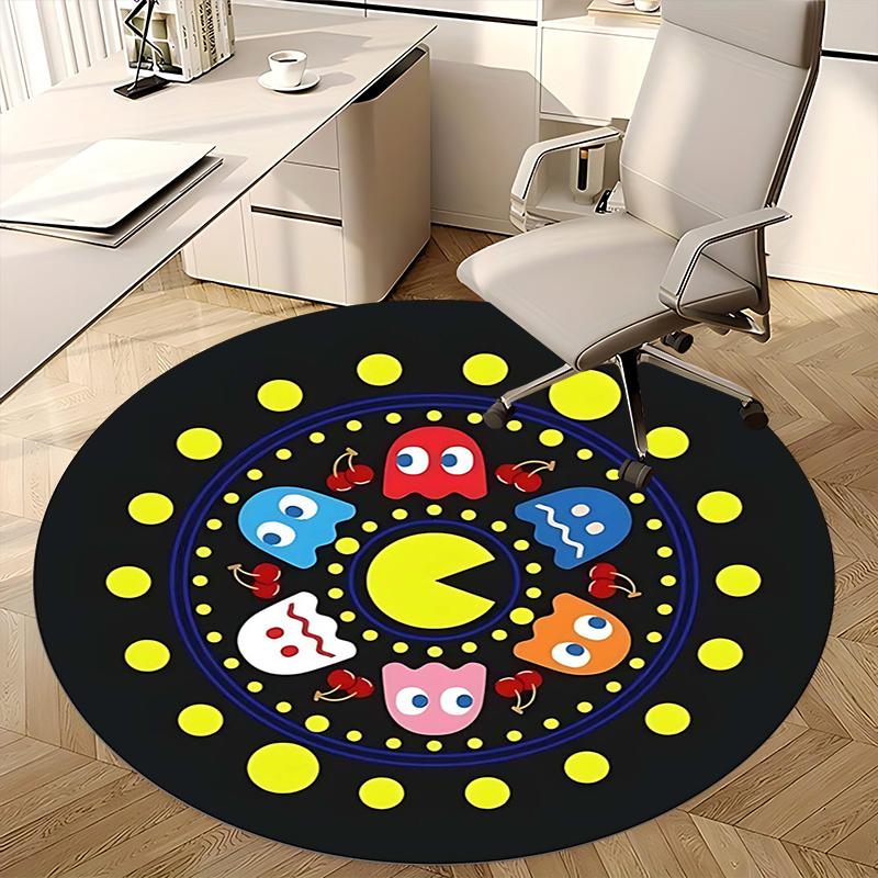 Pac Man Karakters, Retro Gaming Art Stoelmat Ronde Vloerkleed Kantoorvloerkleed, Machine Wasbaar, Antislip, Geschikt voor Woonkamers, Slaapkamers