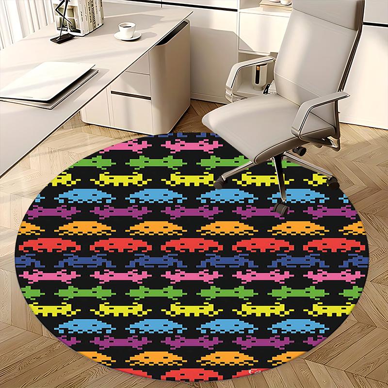 Space Invaders Pattern,Retro Video Game Design Chair mat Round Rug Office carpet, Machine Washable, Non slip, Suitable for Living Rooms, Bedrooms