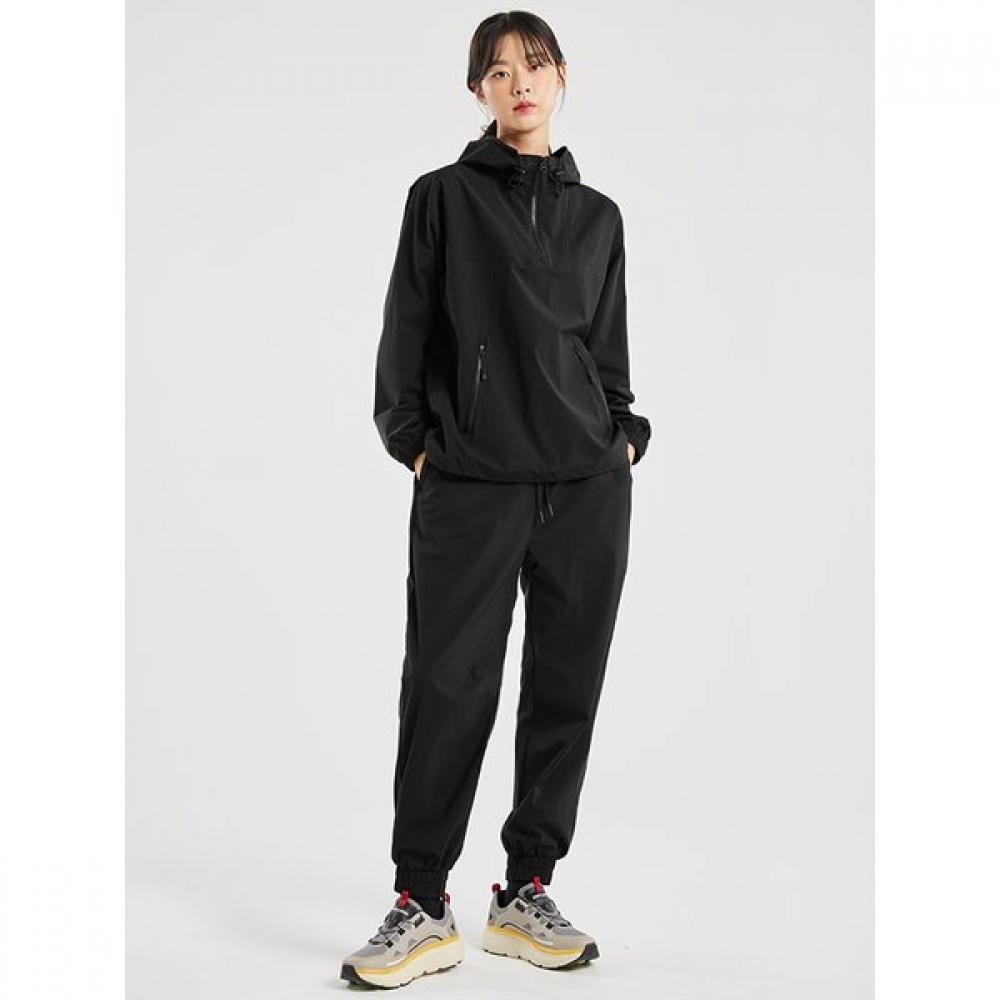 The Achiclassic Windbreaking Field Hooded Anorak Black Set features a unisex design. Lightweight with wind resistance, it is ideal for casual training and field activities.
