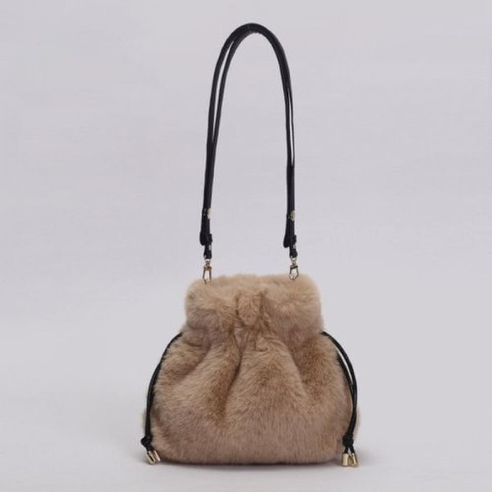 The LALA Faux Fur Pouch Bag in Light Beige is a pouch-shaped bag featuring a soft and warm texture. Made from hand-knitted style and fur material, it forms an adorable pouch shape and can be used as a clutch or crossbody bag. It is suitable as a daily pouch for the winter season and provides practical storage capacity for various personal items.