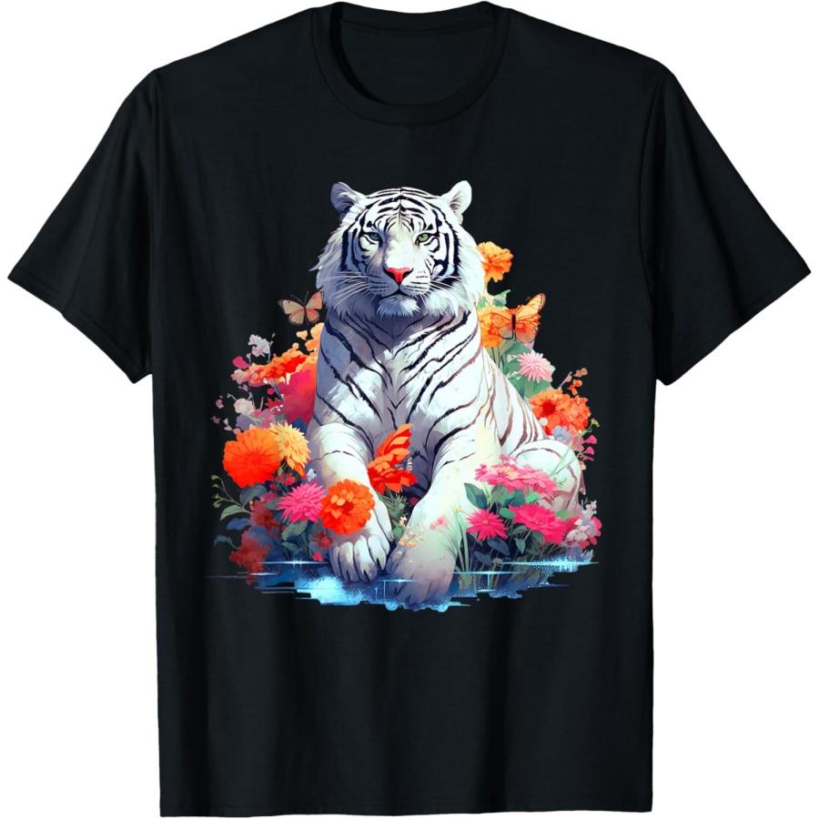 Tiger in White - Flower Art - Animal Art Tiger T-Shirt