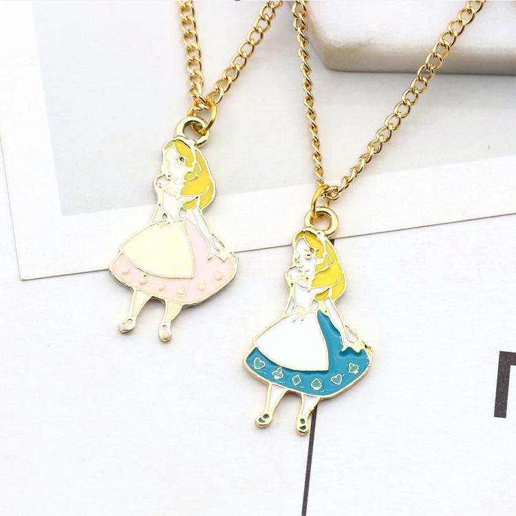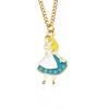 Cute Alloy Cartoon Alice Necklace Creative Colorful Clock Pendant Gifts for Female