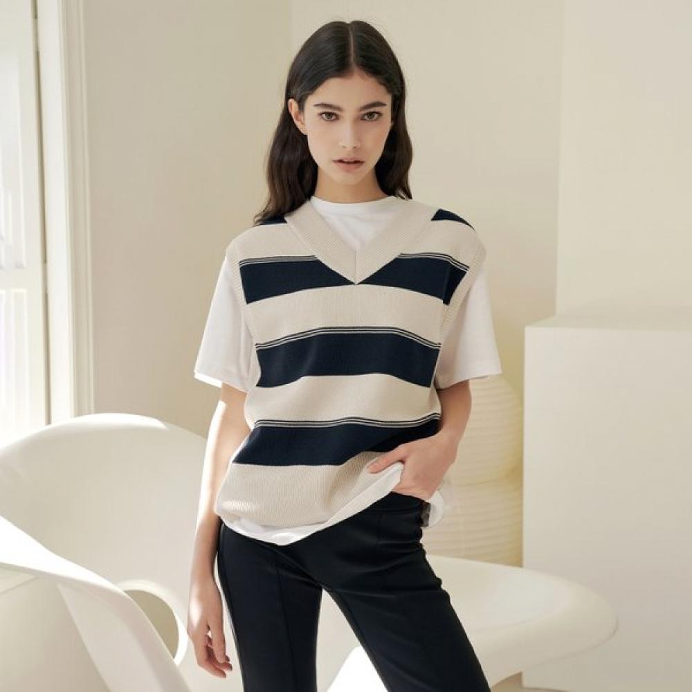 The WIT V-Neck Knit Vest HTWVT2K02T is ideal for women's casual style. It features a v-neck design that creates a clean silhouette, with jacquard logo lettering on one side of the chest and the bottom back to emphasize brand identity.