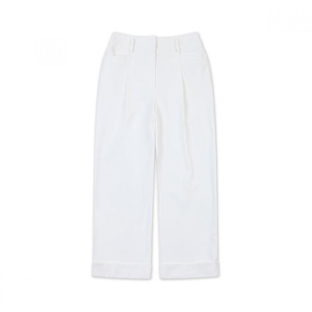 The OnOff Women's Long Pants High Waist Roll-up OF5002LA_WHITE provides a stylish and comfortable fit. This product is an ideal golf wear for daily use, characterized by its design that supports freedom of movement.