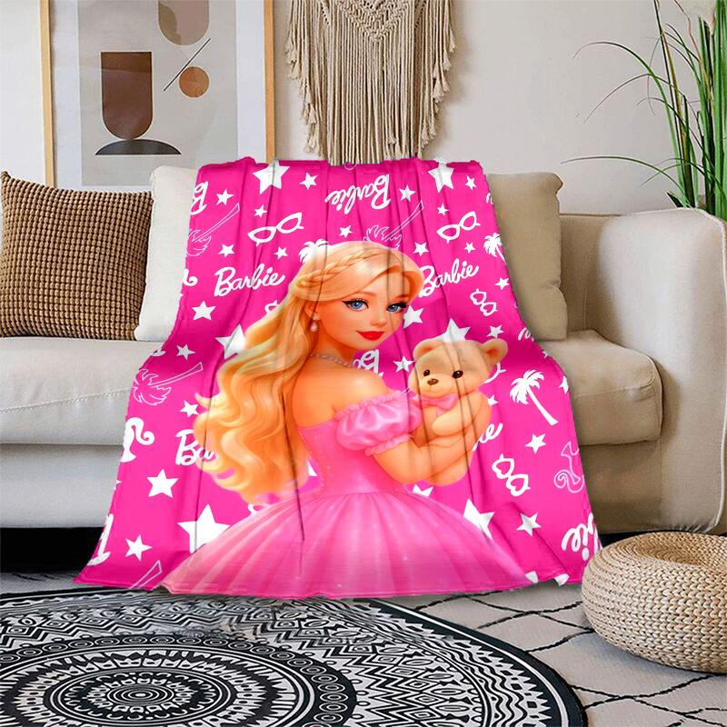 1 st Barbie Roze Prinsessenjurk Teddybeer Cartoon Deken, Draagbare Plaid voor Reizen & Kamperen, Gezellige Deken voor Alle Seizoenen, Ideaal Cadeau