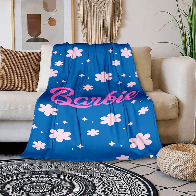 1 stuks Barbie Bloemen Sparkle Blauw Roze Cartoon Deken, Draagbare Plaid voor Reizen & Kamperen, Gezellige Deken voor Alle Seizoenen, Ideaal Cadeau