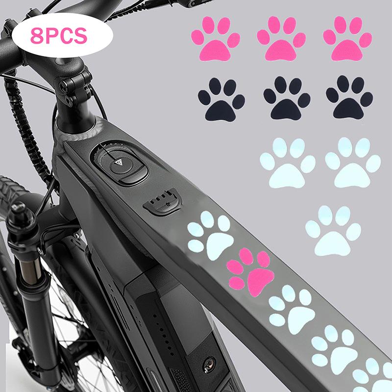 DIY Attractive Cat Paw Reflective Stick-ons for Bicycles, E-Bikes, MTB, Moto Helmets; Vinyl Adhesives for Bike Frames and Tubes