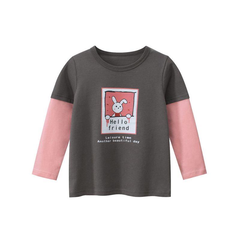 27home Children's Clothing Girl Rabbit Bottoming Shirt Spring and Autumn Kids Fake Two-Piece Long Sleeves T-shirt Baby 100% Cotton Coat