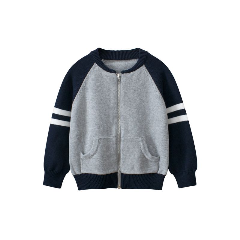 27Kids Spring and Autumn Children's Zip-Up Cardigan, Color-Blocked Knit Sweater for Young Boys, Pure Cotton Sweater Jacket