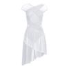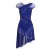Dames Kunstschaats Leotard Jurk Gerimpelde Mesh Overlay Strass Onregelmatige Zoom Openbare Kruis Bodysuit