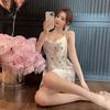 Sexy pyjama dames IJslint borstkussentje kantprint nieuwe slipnachtjapon kan buiten gedragen worden zijden loungewear