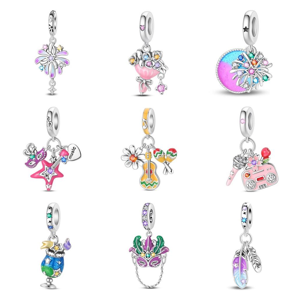 2026 Hobbies Feather Fireworks Mask Charm Pendant Beaded DIY Jewelry Bracelet Accessories 925 Silver